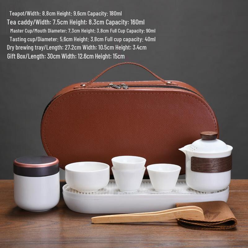 Shangqi Portable White Porcelain Travel Tea Set with Tea Tray
