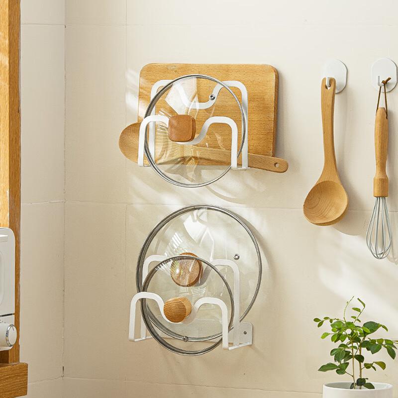 Wall-Mounted Pot Lid & Cutting Board Organizer Rack
