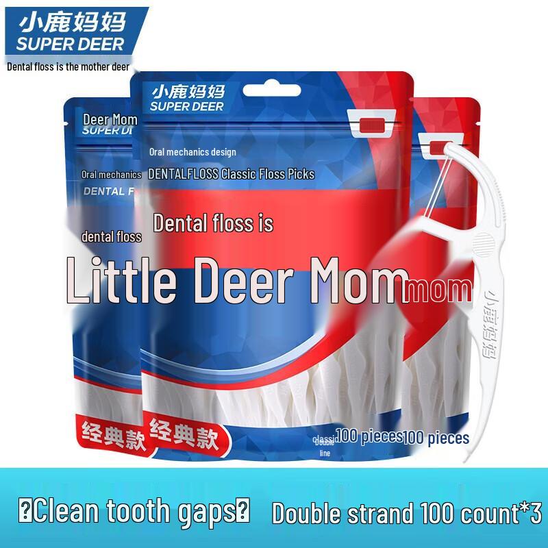 Deer Mama Classic Ultra-Fine Dual Line Dental Floss Picks, 300 Count