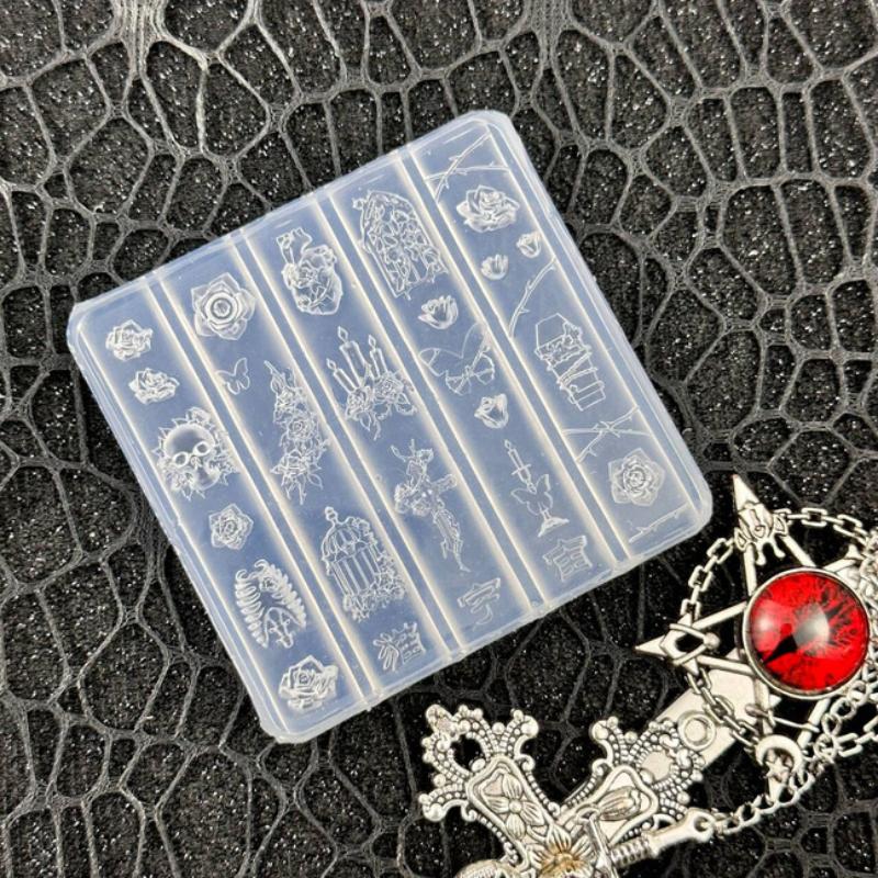 3D Creative Transparent Nail Mold Diy Nail Art Decoration Rose Candlestick Skull Butterfly Birdcage Nail Art Carving Mold