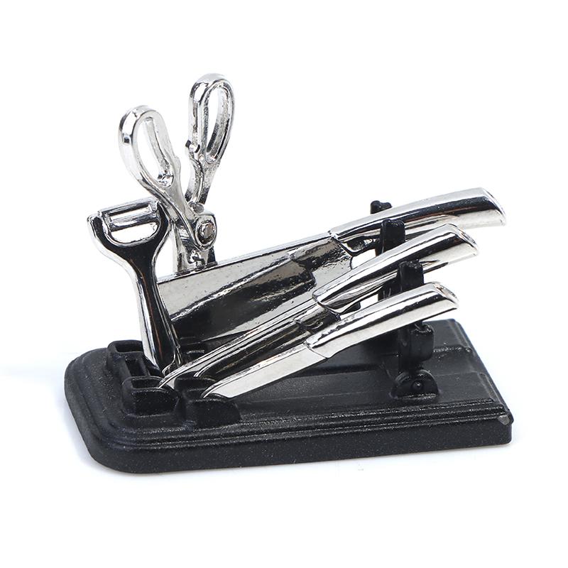 1:12 Dollhouse Miniature Kitchen Knife Set Mini Scissor Peeler Cooking Utensils With Holder Model Kitchen Living Scene Decor Toy