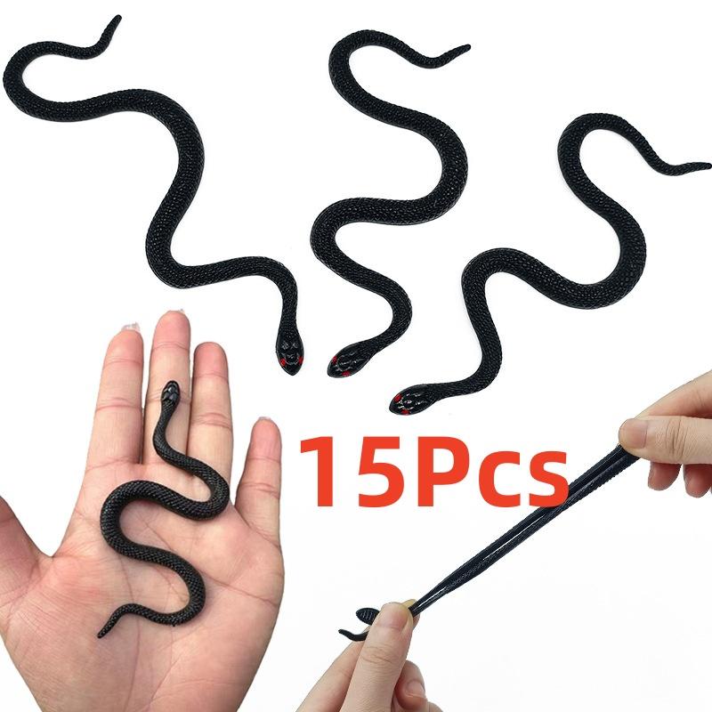 10cm 15Pcs Fake Realistic Rubber Toy Snake Simulation Soft Glue Snake Scary Halloween To Scare Birds Props Prank Trick Toy Gift