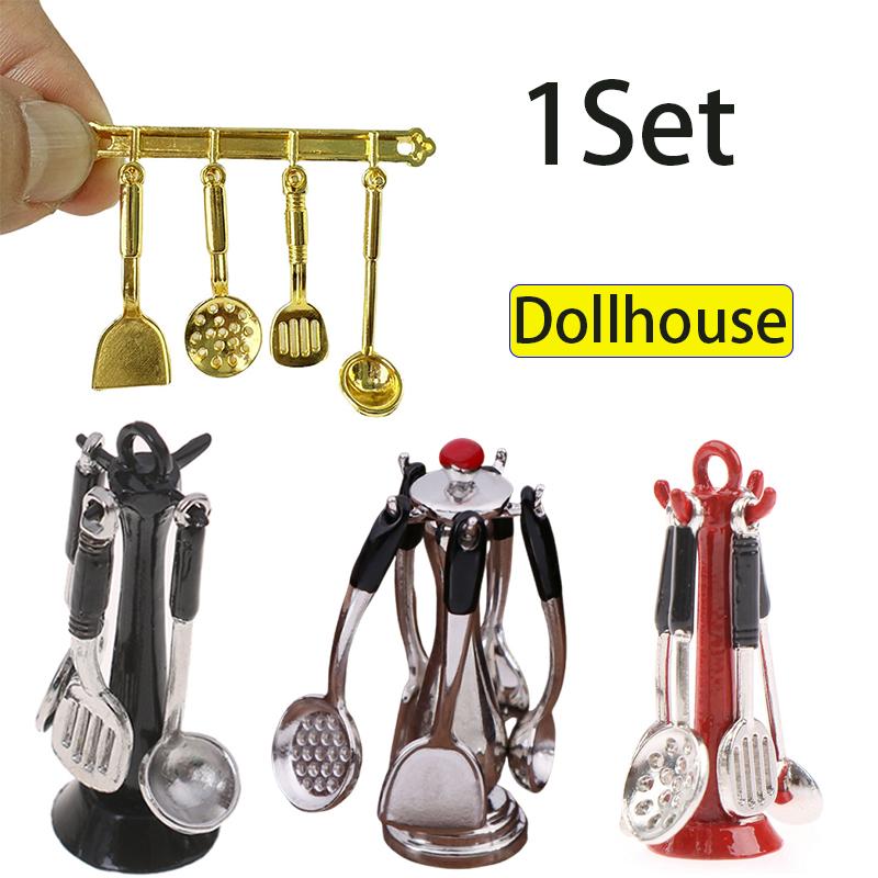 Dollhouse Kitchen Utensil Vertical Hanging Spoon Spatula Spoon Set Miniatures Model Kitchen Accessory Kids Pretend Play Toy