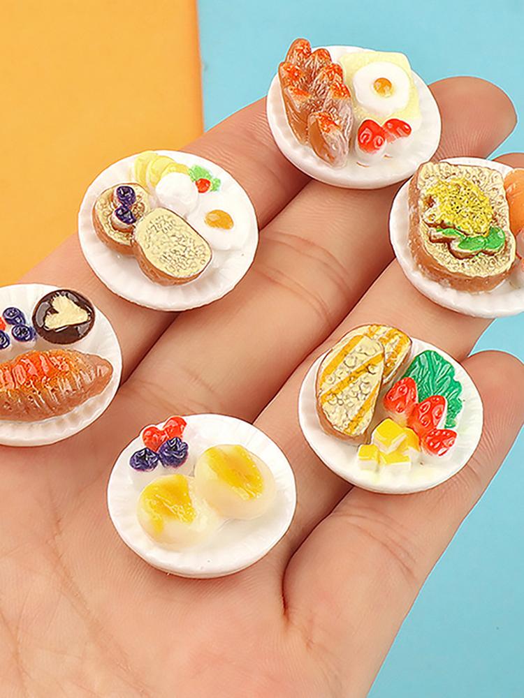 6pcs/Set Dollhouse Mini Dim Sum Platter DIY Miniature Landscape Fairy Garden Decors Accessories Doll House Scene Ornaments