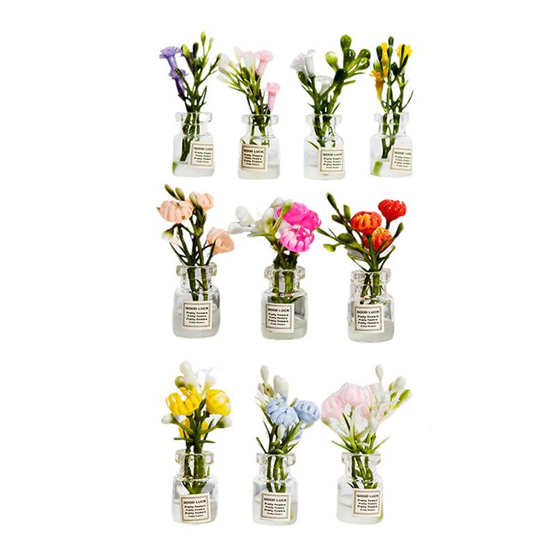 2pcs Mini Flower Vase Dollhouse Accessories Simulation Pink Rose White Jasmine Mini Floral Arrangement Miniature Model