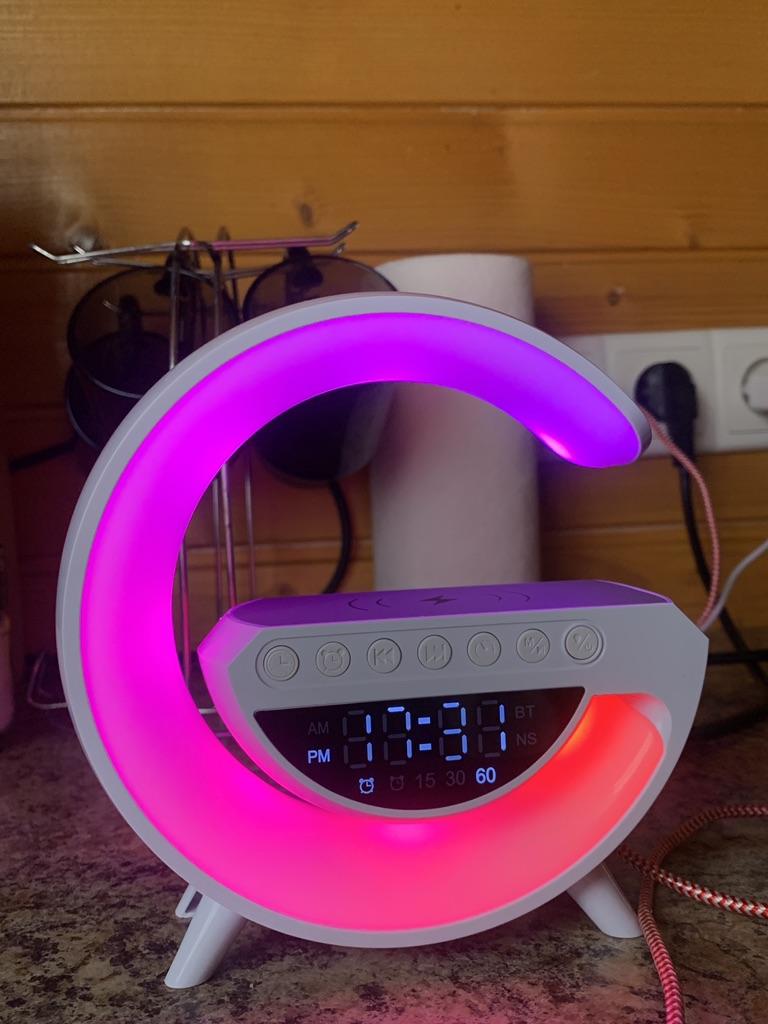G-Shaped LED Wireless Speaker 15W Fast Charging Alarm Clock with 13 Lighting Modes Bedroom Nightstand Lamp Bluetooth-compatible 5.2 Speaker