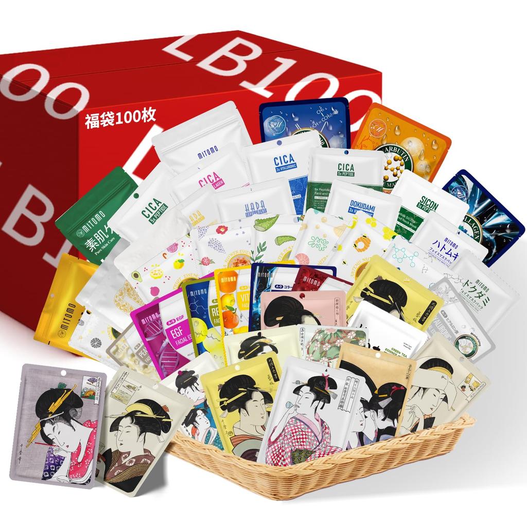 MITOMO LIFE Best Value Face Mask Lucky Bag Large Capacity (100 Sheets) - Exfoliating, Moisturizing, [LBCC000100]