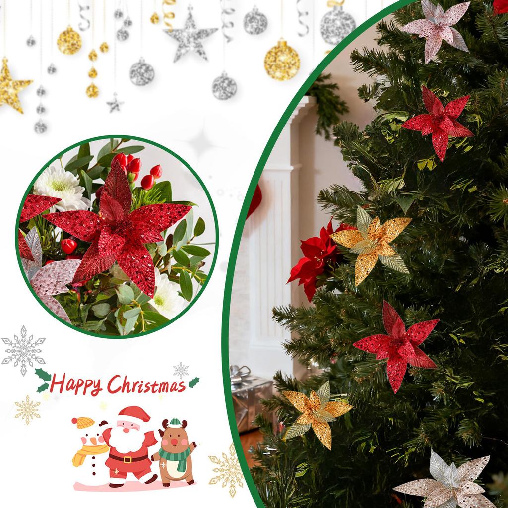 High-end Fabric Christmas Flower Simulation Flower Sticky Powder Gold Powder Flower Arrangement Christmas Tree Wreath Rattan Decoration