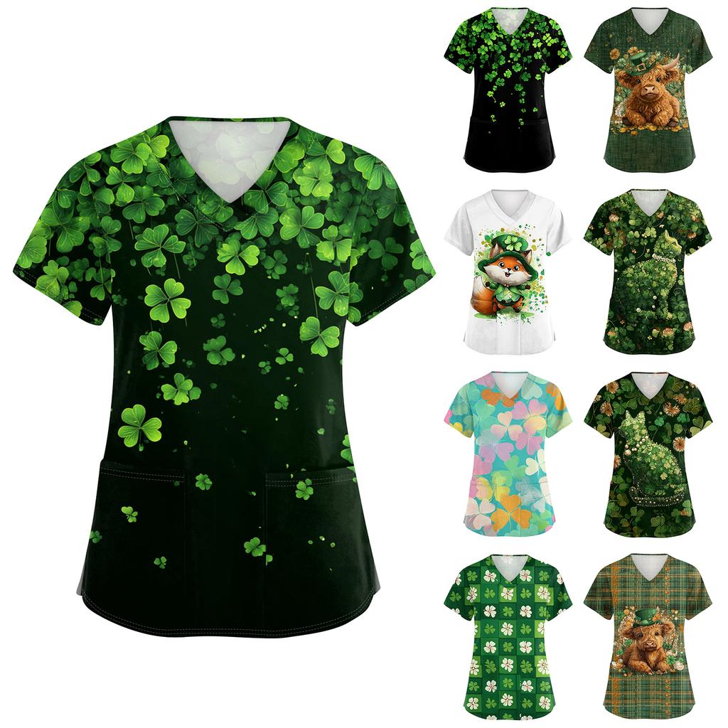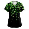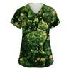 Women's V-neck St. Patrick's Day Printed Short-sleeved Pocket Side-slit Protective Suit Top