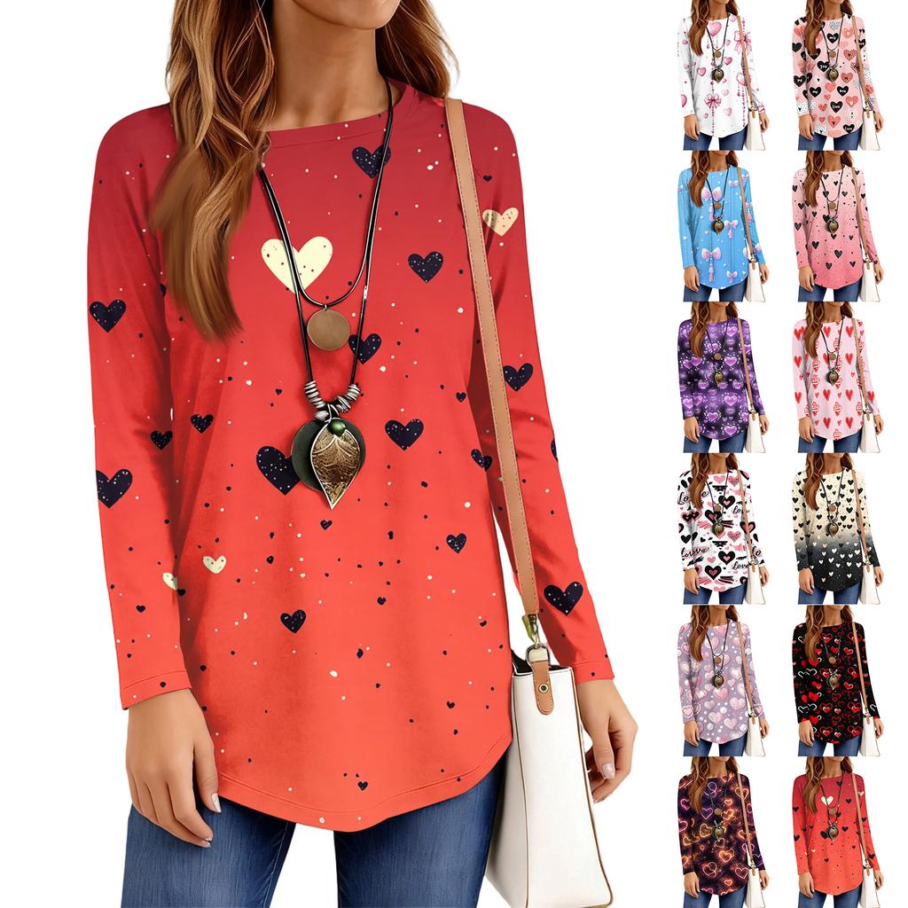 Women's Loose Round Neck Raglan Sleeve Printed Long Sleeve T-Shirt Pullover