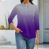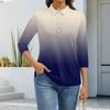 Women's Fashion Casual Lapel Short 3/4 Sleeve Print Shirt Women's Button Up Tops