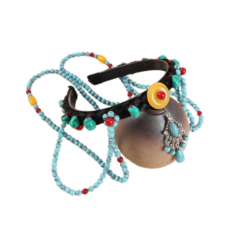 Temperament Headband Girl Turquoise Forehead Chain Hairband for Carnivals
