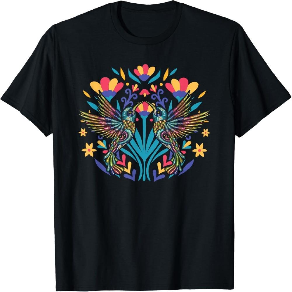 Floral Bird Otomi Mexican Embroidery Style Mexicano Mexicana T-Shirt