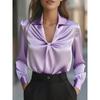 2026 Popular Autumn Fashionable Solid Color Satin Pleated Long-sleeved Shirt for Women