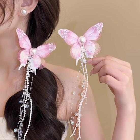 Girls Hair Pin Butterflies Decor Faux Pearls Beaded Long Tassel Hair Clip Wedding Prom Birthday Hair Barrette