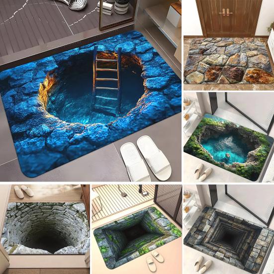 Floor Mat 3D Optical Illusion Design Floor Rug with Anti-Slip Dots Artistic Cave Design Decorative Accent Carpet Home Decor