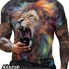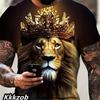 Mens Lion Print Short Sleeve O-Neck T-Shirt Soft Breathable Casual Wear Outdoor Activities Sports Loose Oversized Tops