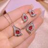 New Women's Jewelry Three Piece 925 Stamp Premium Inlaid Irregular Red Zircon Party Wedding Bridal Jewelry Gift