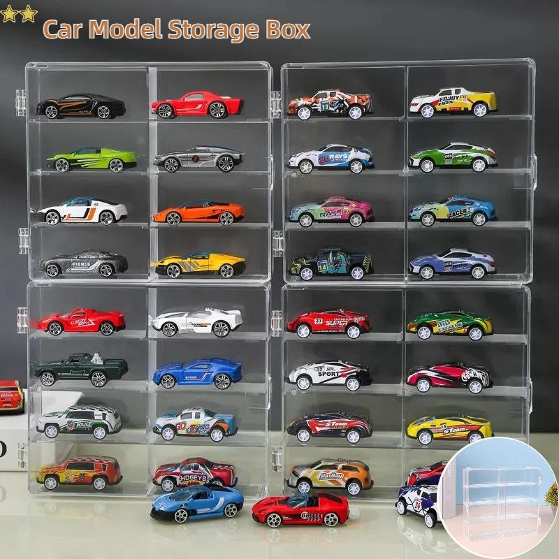 1Set 8 Slot 1:64 Scale Car Model Storage Box Clear Dustproof Display Collection Storage Container Toy Car Shelf