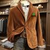 Men's Printing Corduroy Warm Pocket Suit Jacket Cardigan Men's Casual Suit