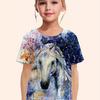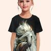 Children's Clothing Girl Clothes Short Sleeve Girl T-Shirt Casual Vintage Horse Print Kids Summer Clothes Girl Top O-Neck Tee S