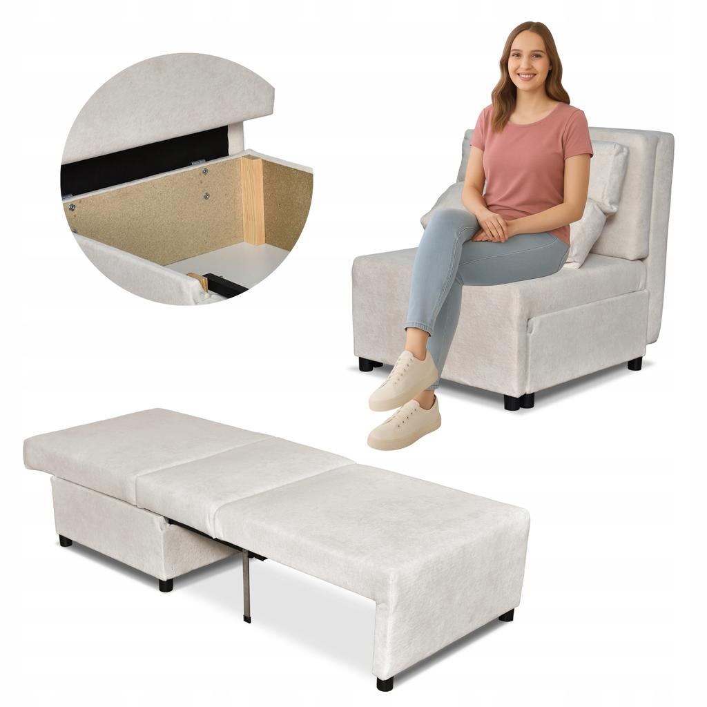 Fold-out Armchair for Sleeping KIMO Bedding Container Family Furniture Hunter Beige