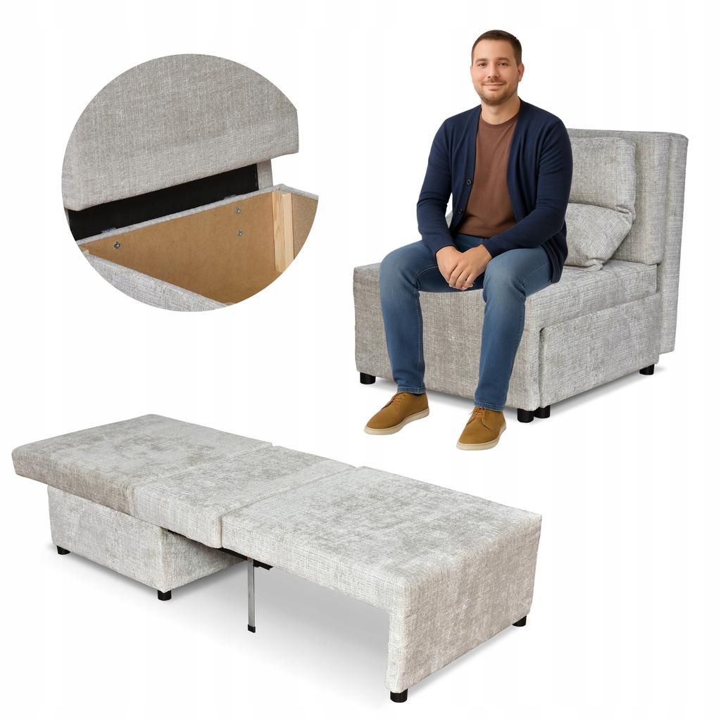 Fold-out Armchair with Sleeping Function KIMO Bedding Container Ramona Light Gray