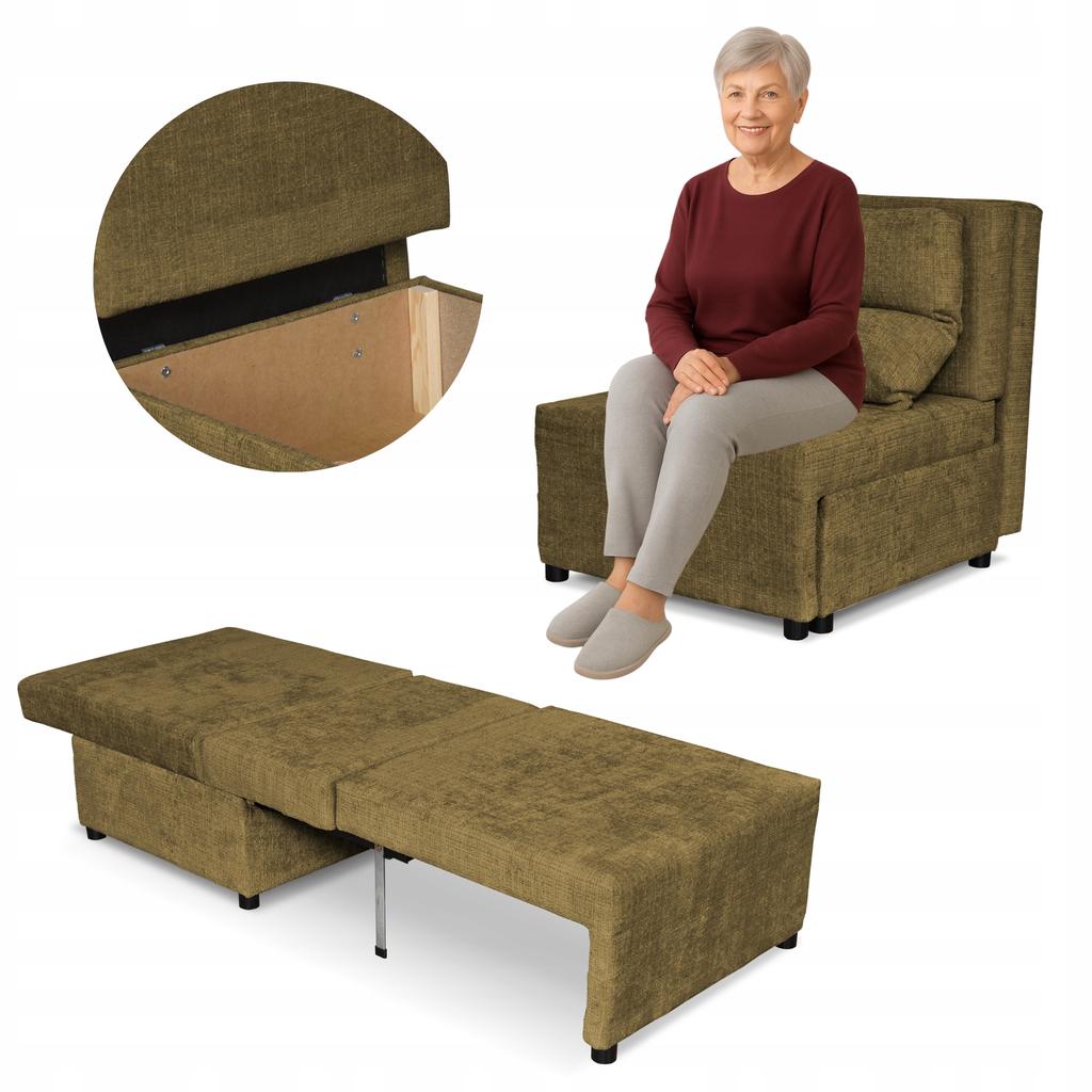 Fold-out Armchair with Sleeping Function KIMO Bedding Container Ramona Brown