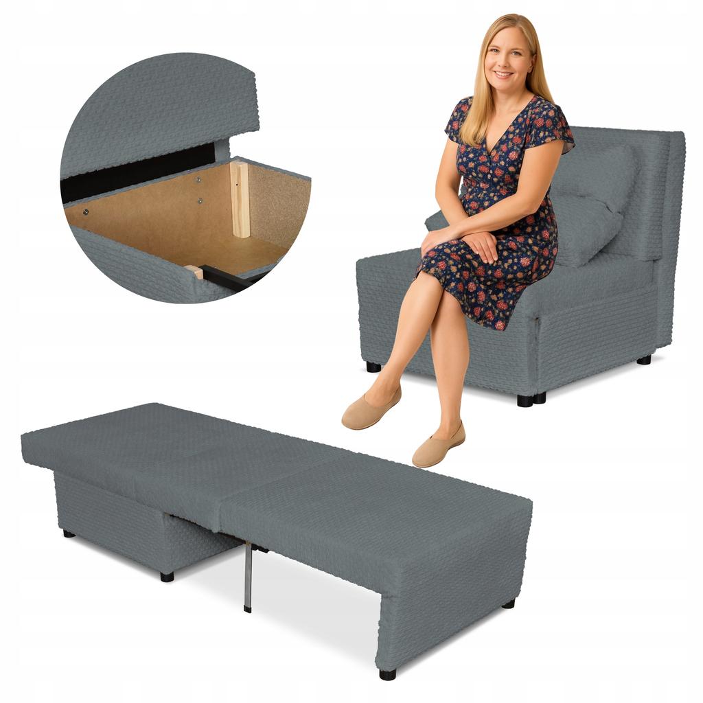 Fold-out Armchair Sleeping Function KIMO Bedding Container Family Furniture Grey