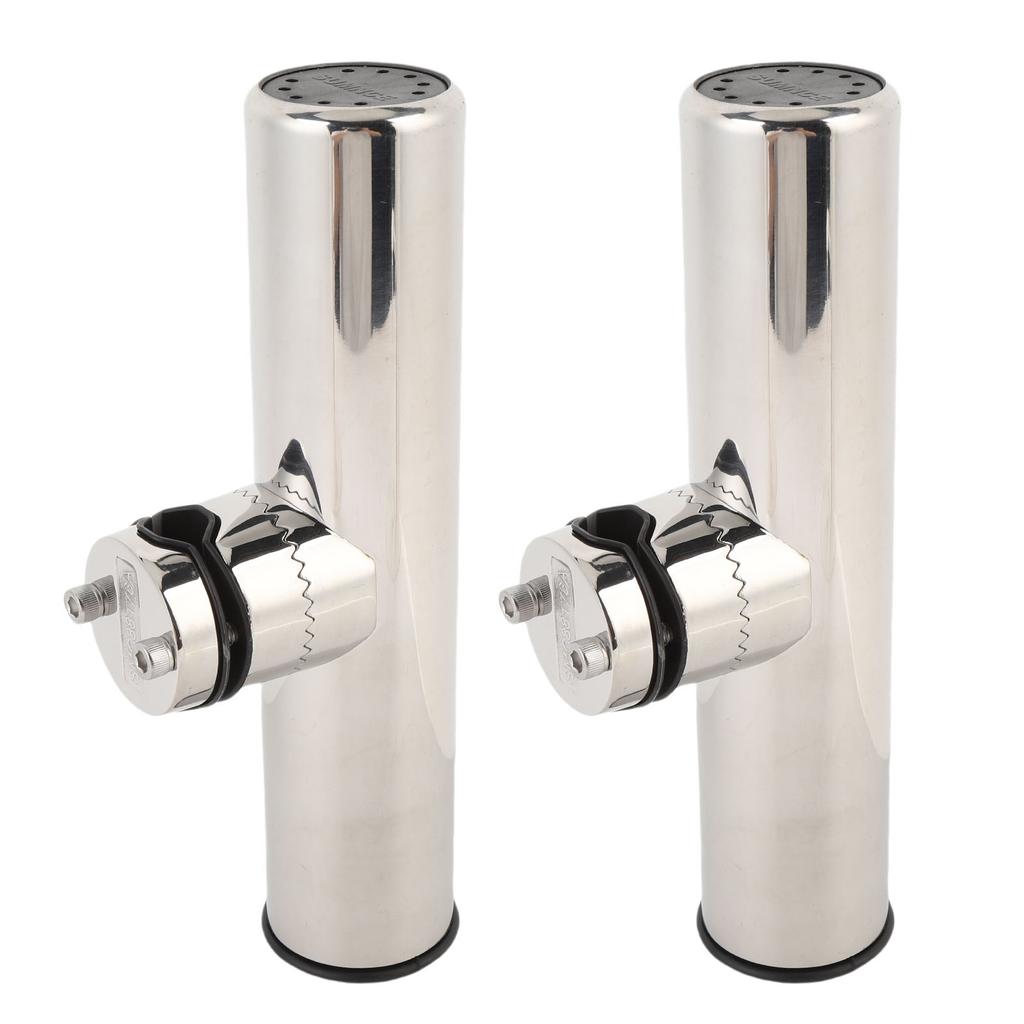 2PCS Tournament Style Boat Fishing Rod Holders Stainless Steel Clamp On Rail Mount Fishing Pole Holders Mounted To