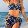 European and American New One-piece Swimsuit Sexy Back Printed Women's Three-piece Bikini