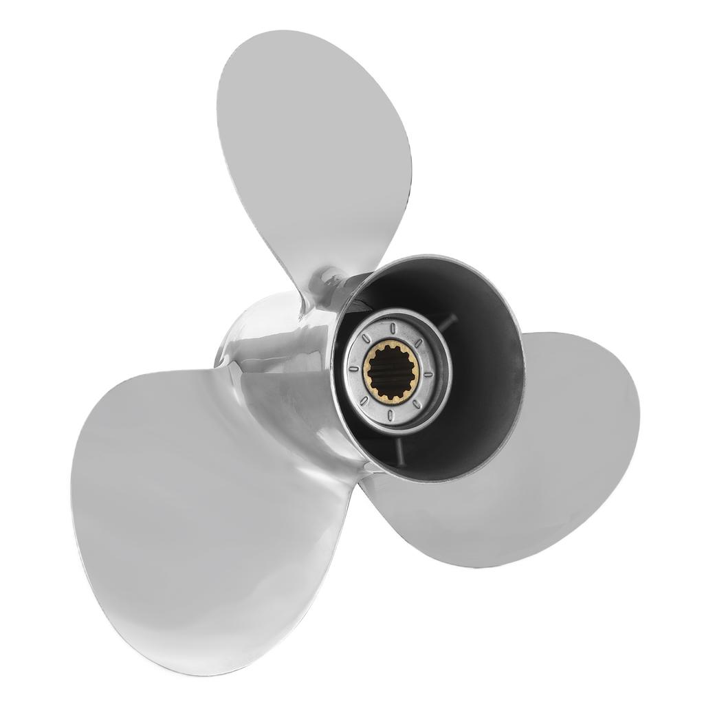 11 5 8in Boat Propeller 3 Blades Stainless Steel 13 Tooth Corrosion Resistance Replacement for YAMAHA Outboard 25‑60HP
