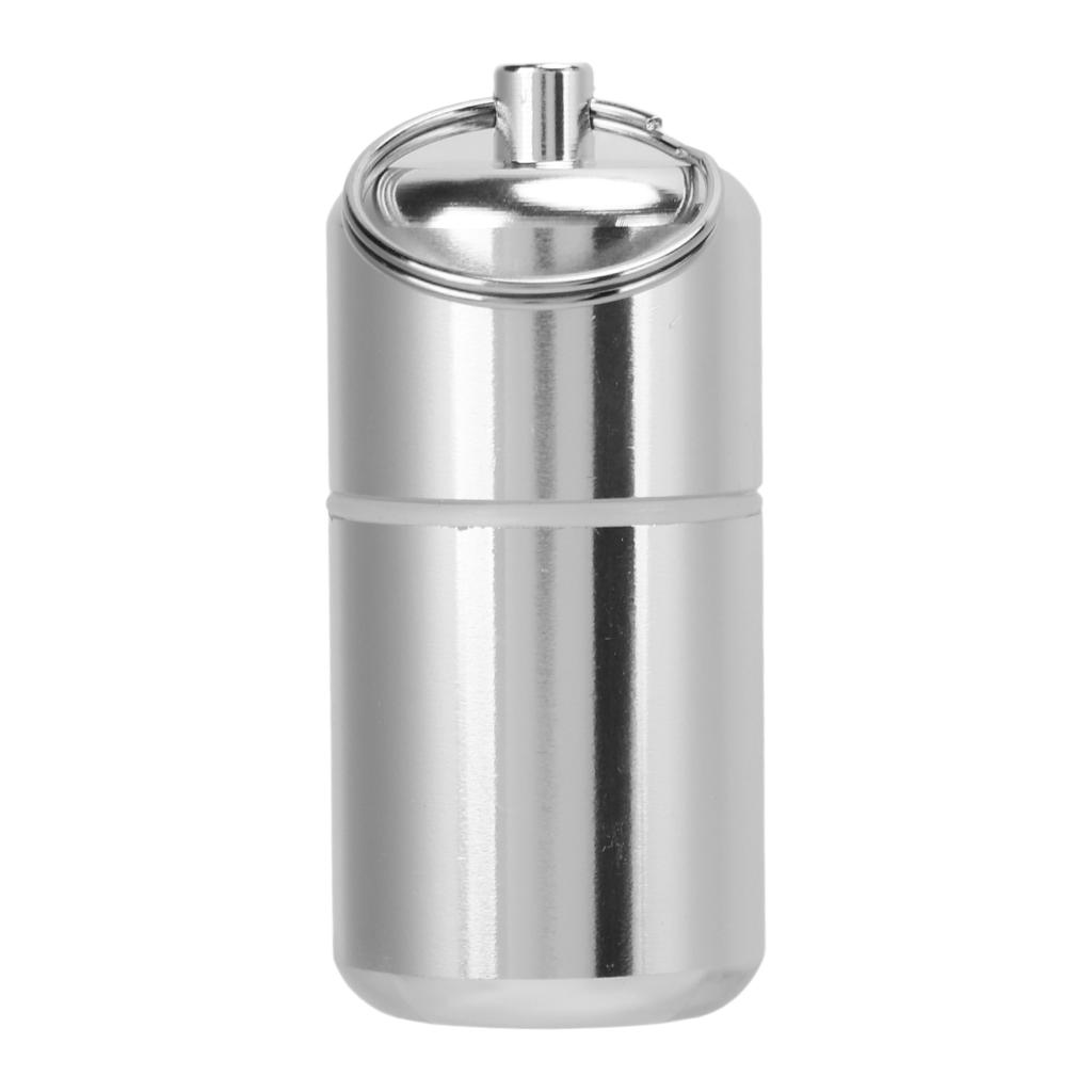 Aluminum Keychain Tablet Storage Box with Hanging Ring Waterproof Outdoor Mini Medicine BottleSilver