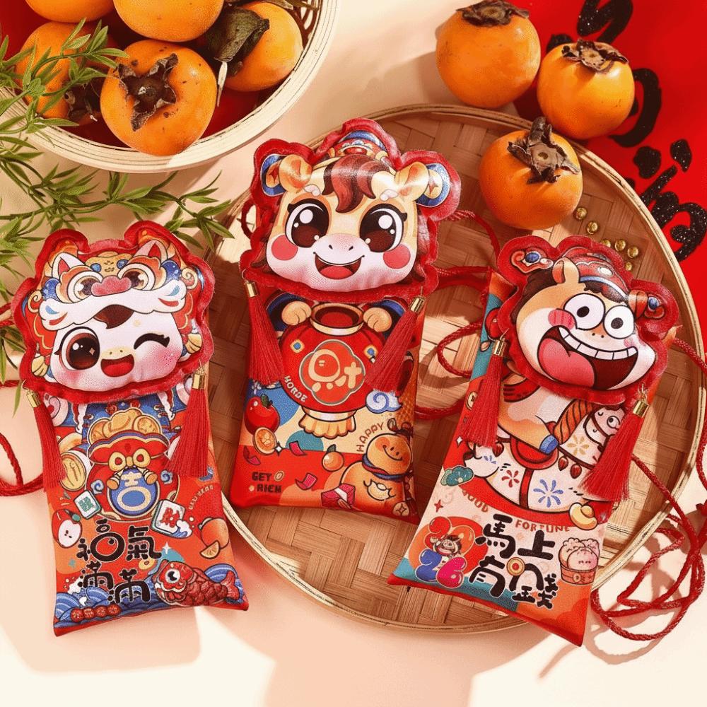 Cartoon Money Pocket With Shoulder Straps Red Envelope New Year's Blessing Bag Wedding Birthday