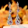 Cute Female Red Zircon Stone Water Drop Dangle Earrings for Women Silver Color Vintage Bridal Wedding Engagement Jewelry