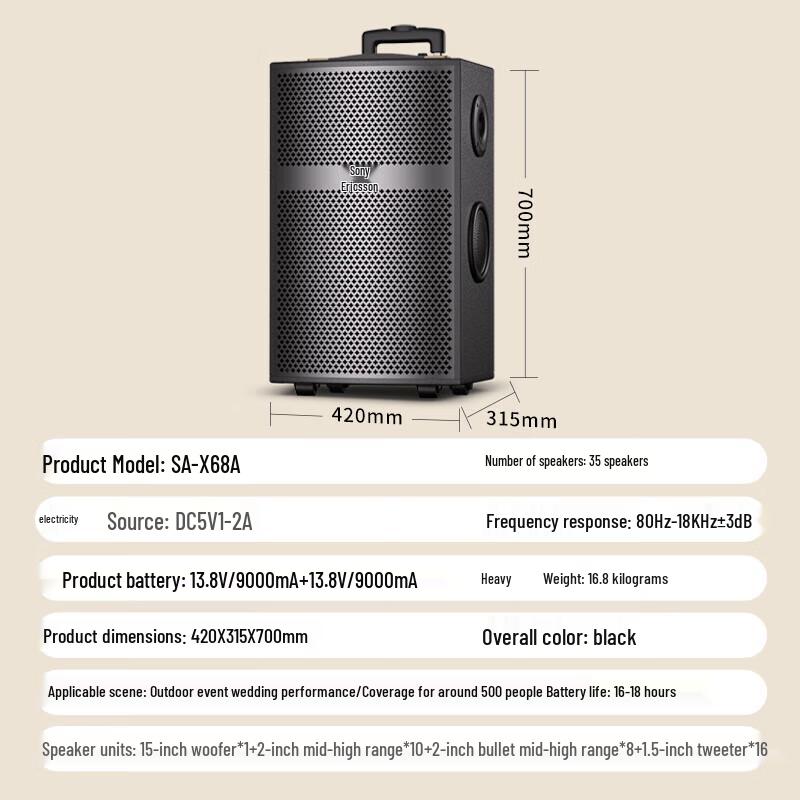Soaiy X68(A) 15-inch High Power Portable KTV Speaker CN Plug (adapter Included)