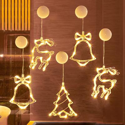 LED Christmas Light Star Bell Snowman Santa Suction Cup Fairy Light Christmas Ornaments for Home Window Decoration