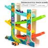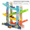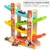 Montessori Multicolor 4-Track Car Ramp Toy with 6 Mini Cars Christmas Gift Party Presents Toddlers Wooden Fine Motor Puzzle Toy