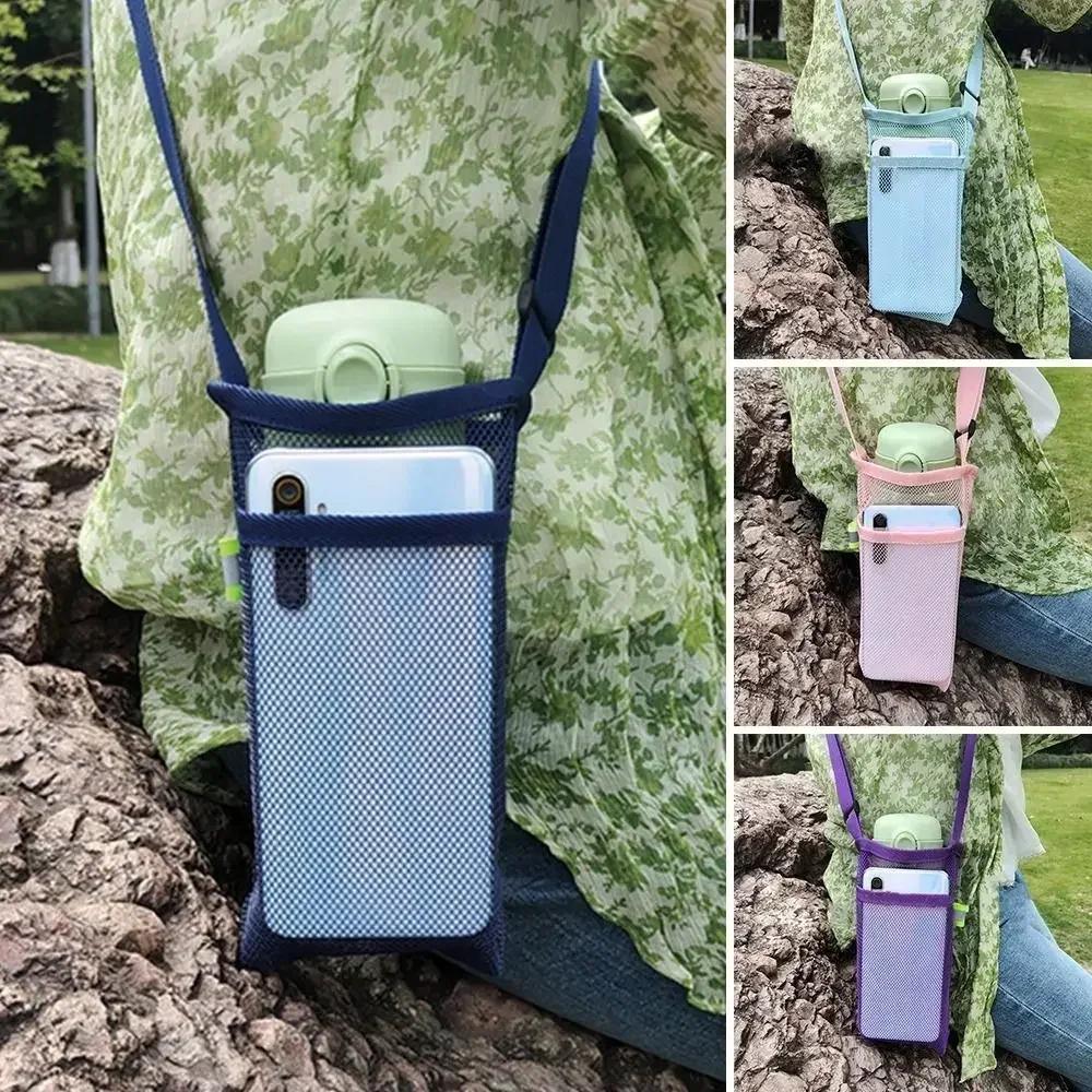 Travel Outdoor Sport Water Bottle Cover Portable Mesh Cup Pouch with Strap Mobile Phone Bag Visible Bag Camping Accessories