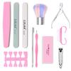 Set-1:Nail Art Brush *1,Polishing Block *1,Cuticle Clipper *1,Nail File * 3,Metal Nail File *1,Cuticle Fork *1,Dust Brush *1,Nail Clipper *1,Toe Separator*2.