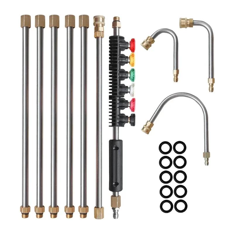 4 types of extension wand: Come with 4 types of pressure washer extension wand, including 30 degree, 90 degree, U shape and straight wand, suit for cleaning, roof, wall, gutter, floor, corner, etc.