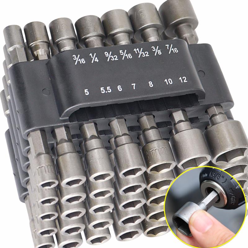 9/14Piece Hexagon Nut Driver Drill Bit Steel Socket Screwdriver Wrench Set Drill Bit Adapter Electric Impact Bolt Handle Tools