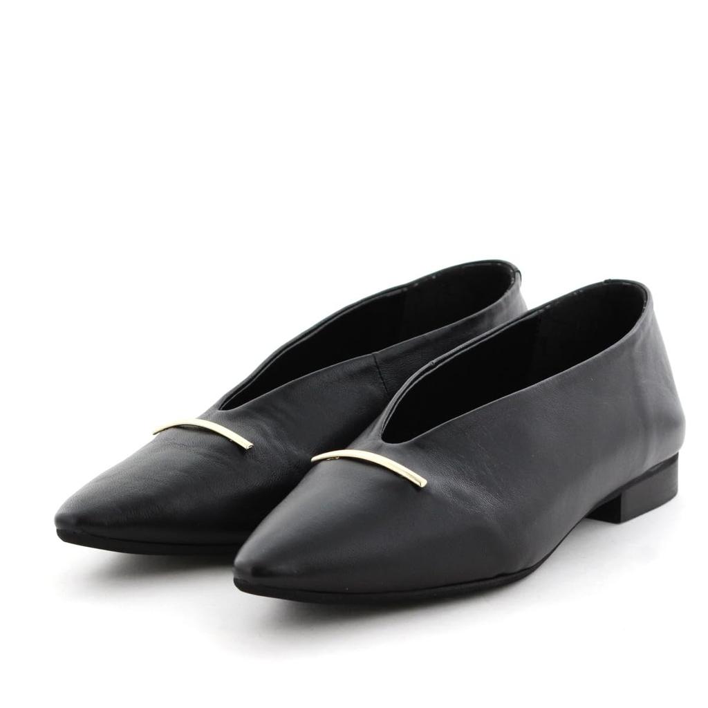 HIMIKO Metal Bar Flat Pumps, Genuine Leather with Soft Cushioning, Black, Size 235 (Product Code: 651303)