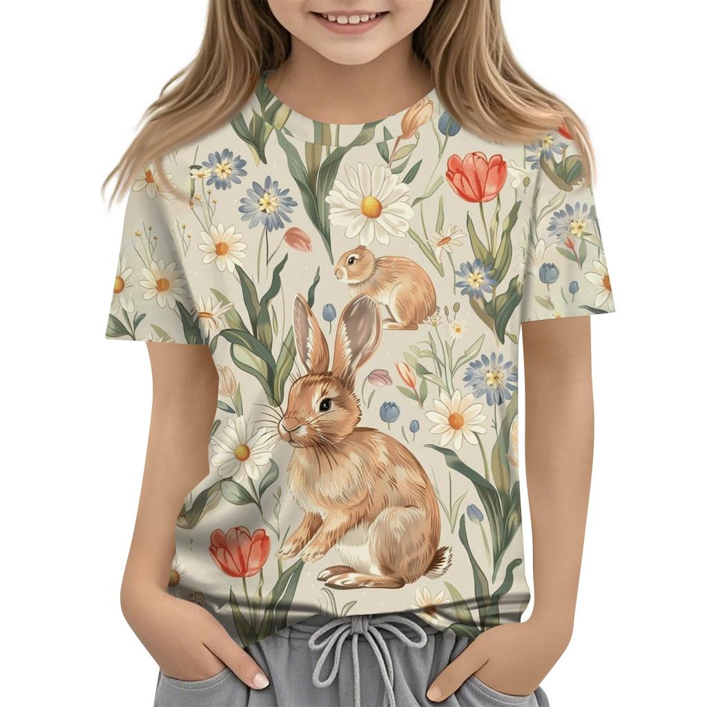 Children's Fashion Casual Short Sleeve Plant Printed Round Neck T-Shirt Top