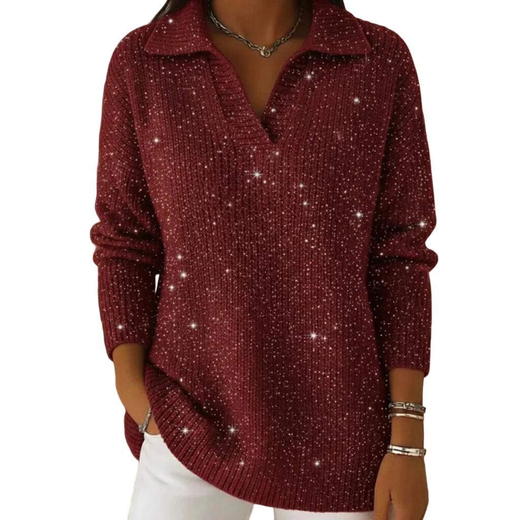 Women's Casual And Fashionable Long Sleeved Knitted Solid Color Top Sweater