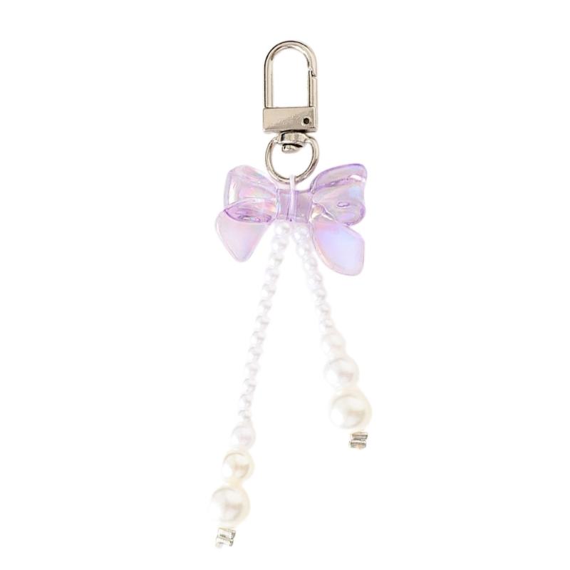 Bowknot Shaped Keychain Pendant Pearls Beaded Butterfly Knot Key Chain Fashionable Bow Ornament for Phones and Bag