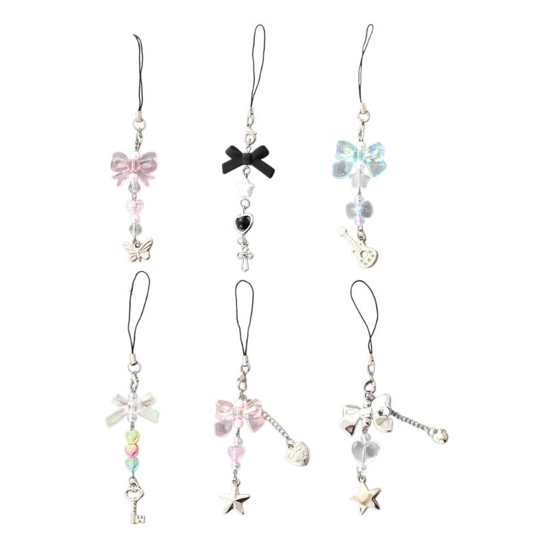 Cute Bowknot Phone Charm Strap Detachable Keychain Pendant Butterfly Star Phone Lanyard Backpack Decors for Women Girls