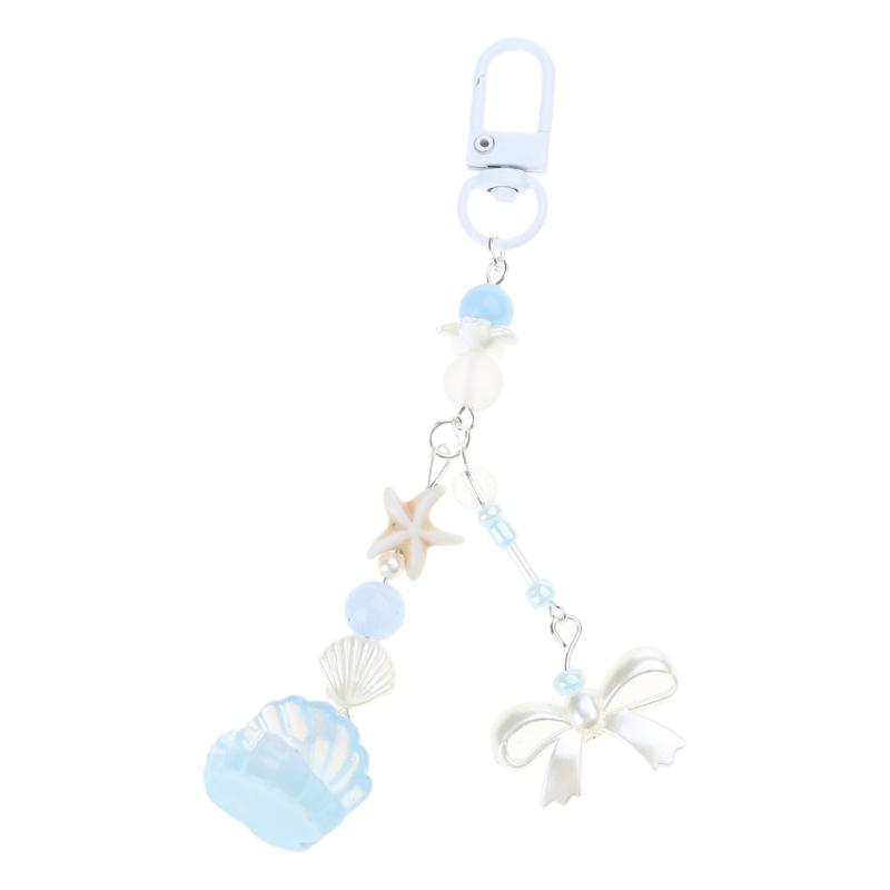 Cute Shell Bowknot Bead Keychain Pendant Lovely Hanging Decorations Keyring Charm for Purse Bag Backpack Handbag
