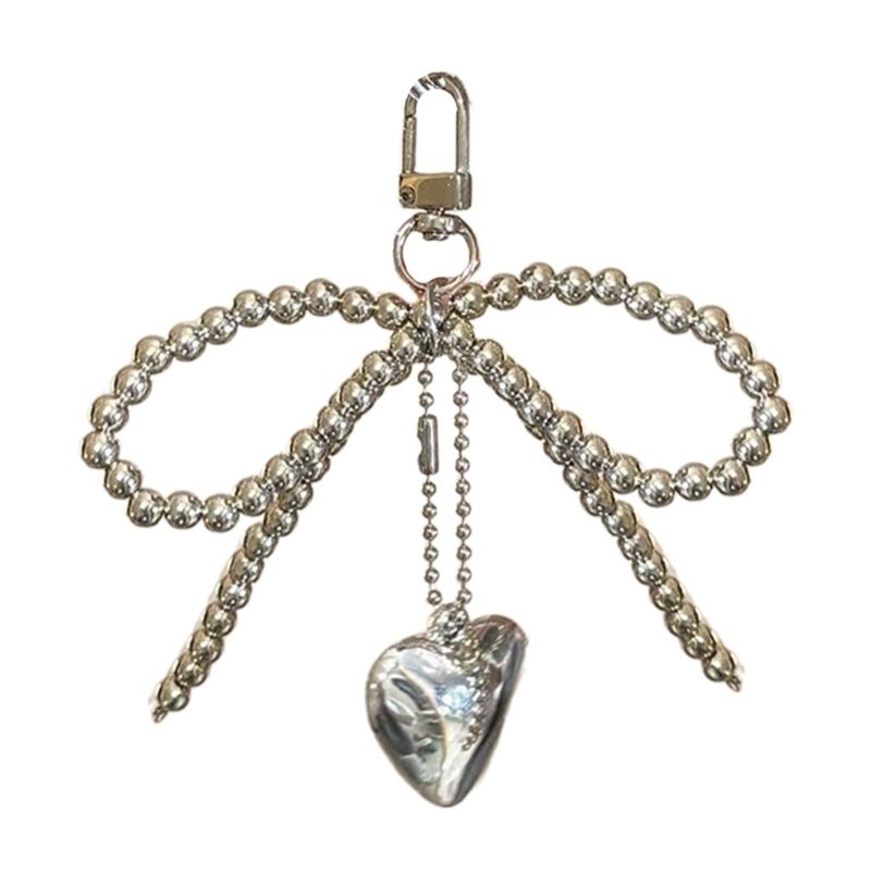 Cute Bead Bowknot Heart Keychain Pendant Lovely Hanging Decorations Keyring Charm for Purse Bag Backpack Handbag