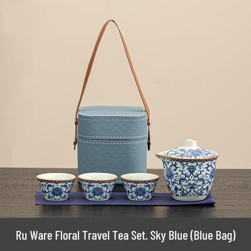 Shangqi Celadon Intertwined Lotus Portable Tea Set